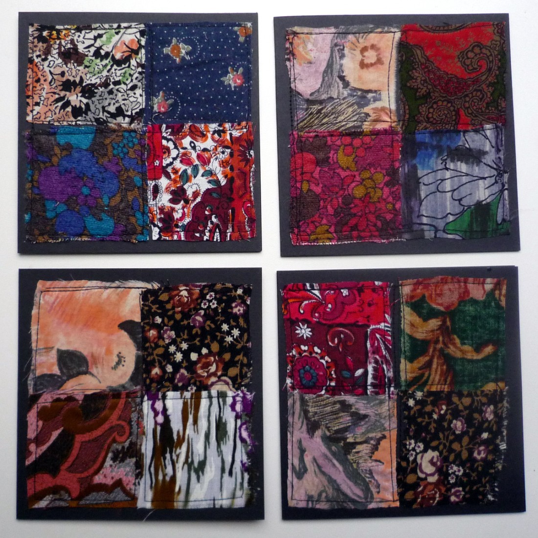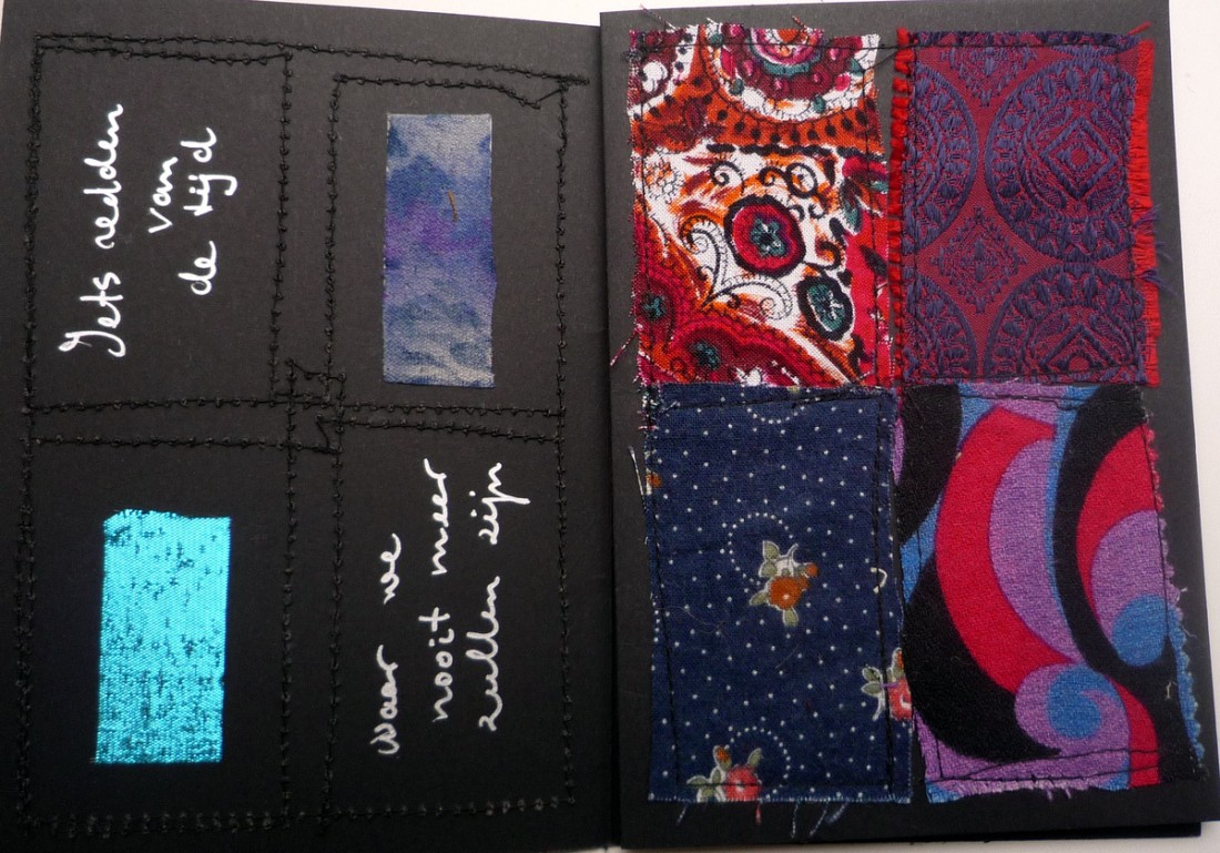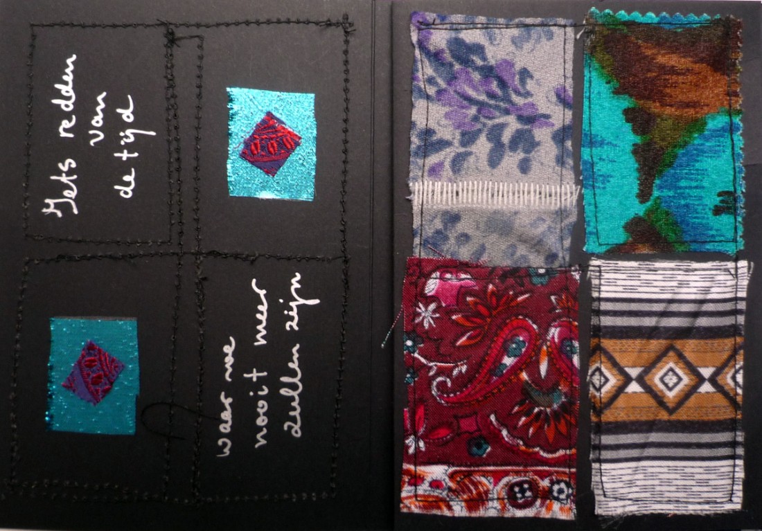 Serie dubbele zwarte kaarten met restanten stof uit mijn verleden