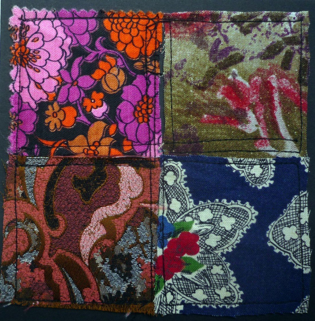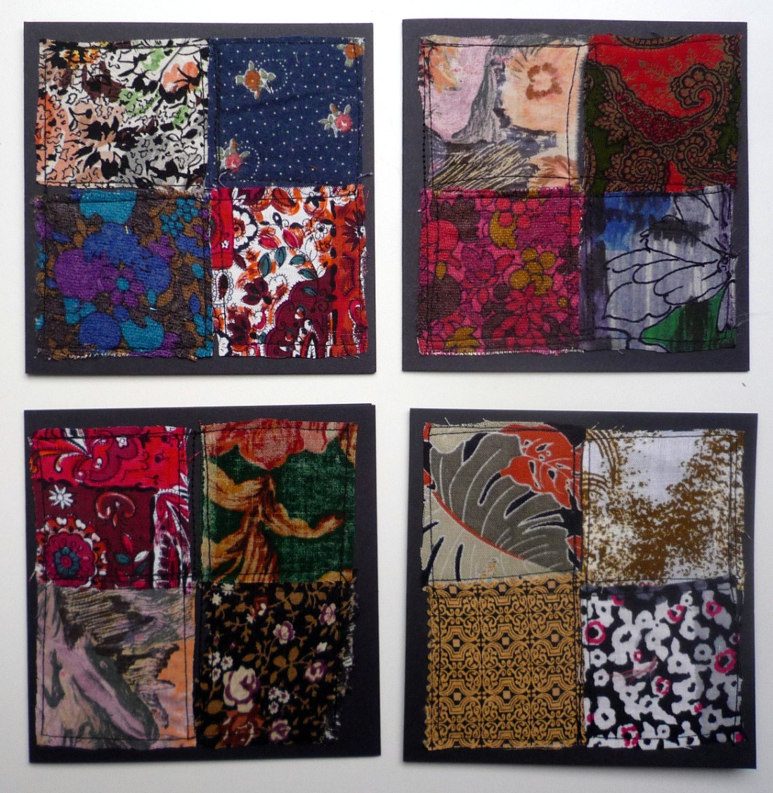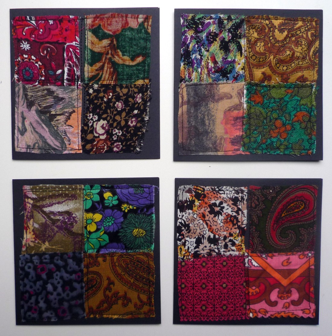 Serie dubbele zwarte kaarten met restanten stof uit mijn verleden